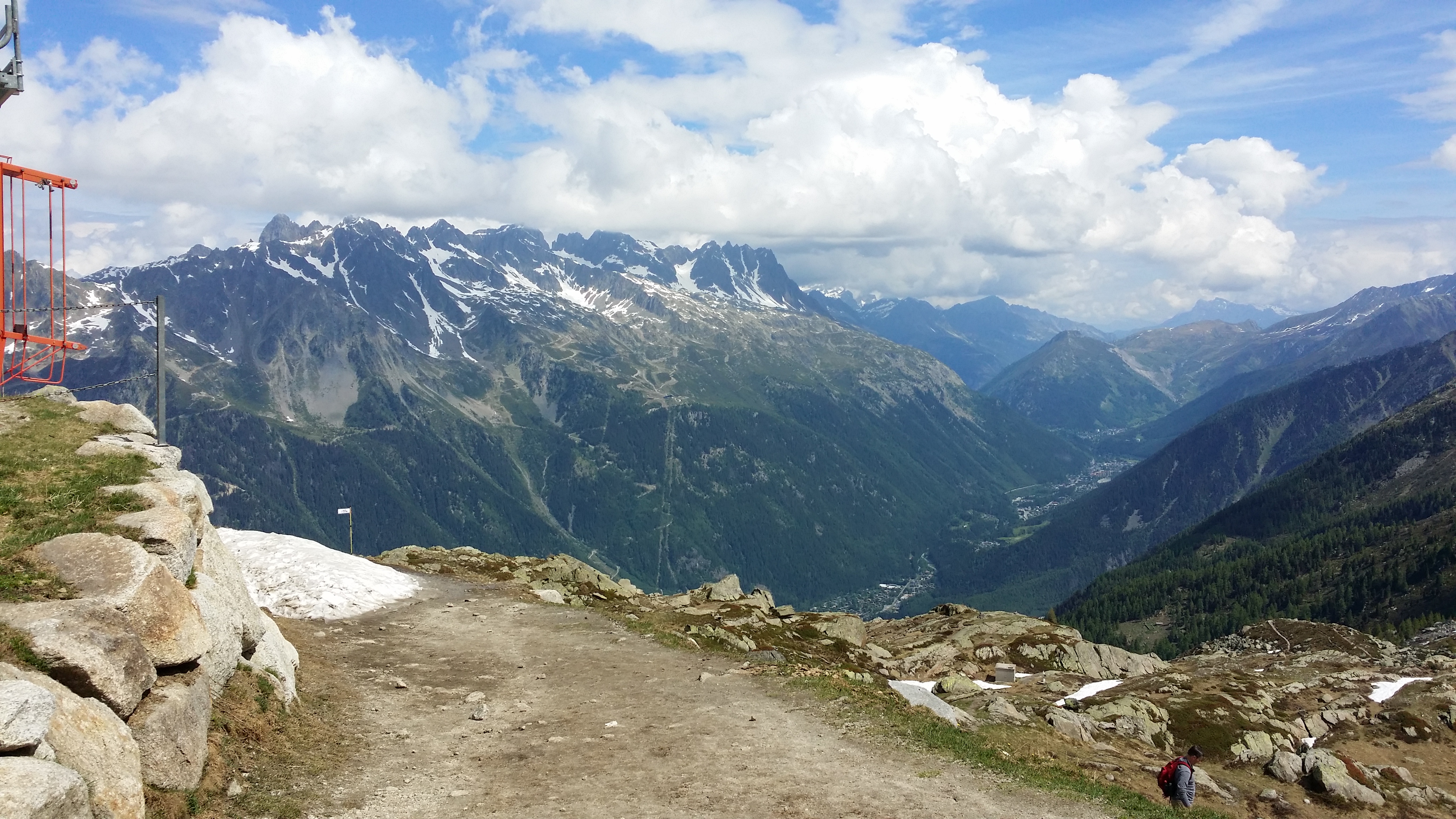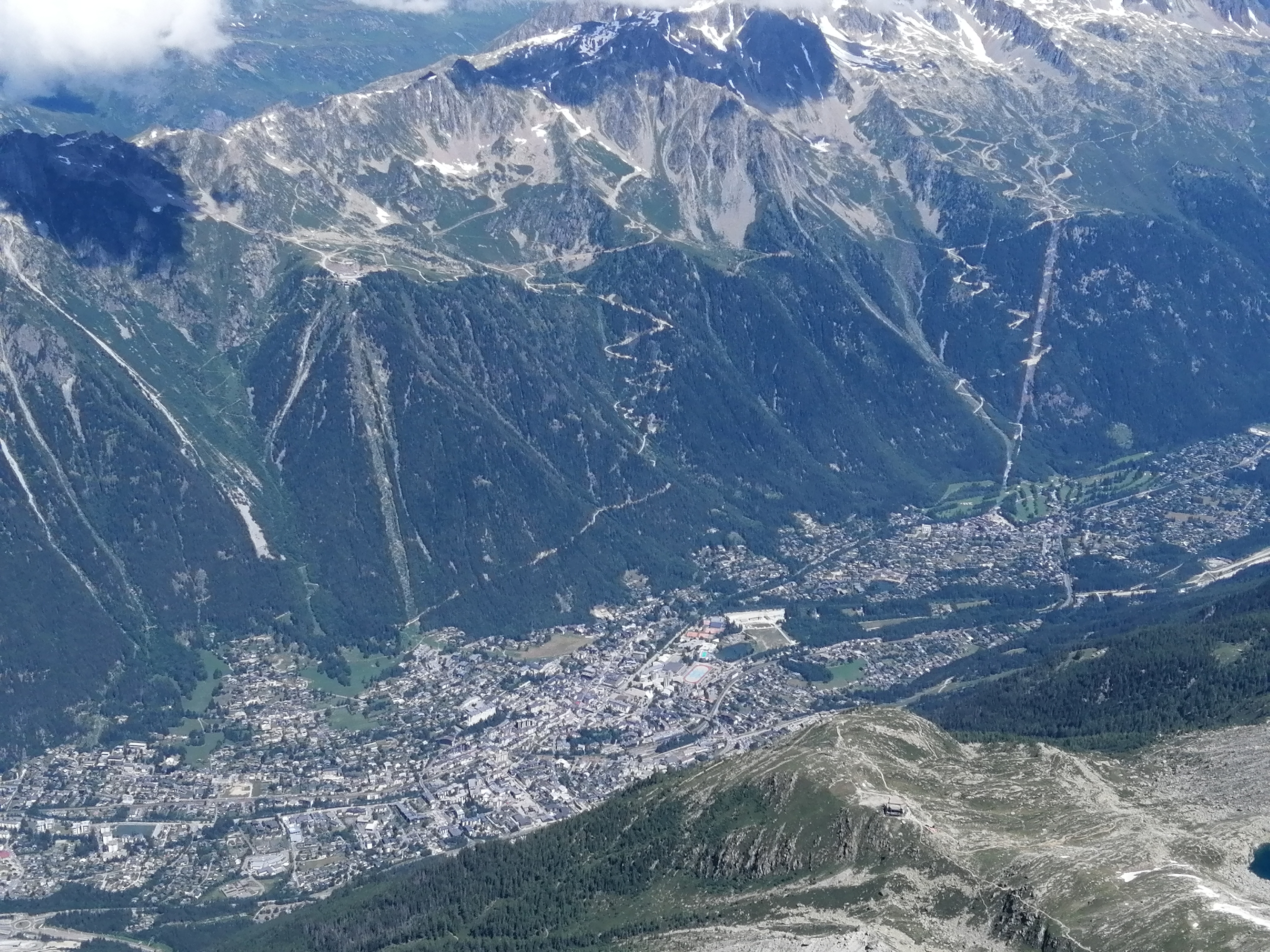 Vue plongeante sur la région de Chamonix, qui mérite une visite, pas seulement comme arrêt à l'Aiguille du Midi. Idéal pour la randonnée et le parapente également...