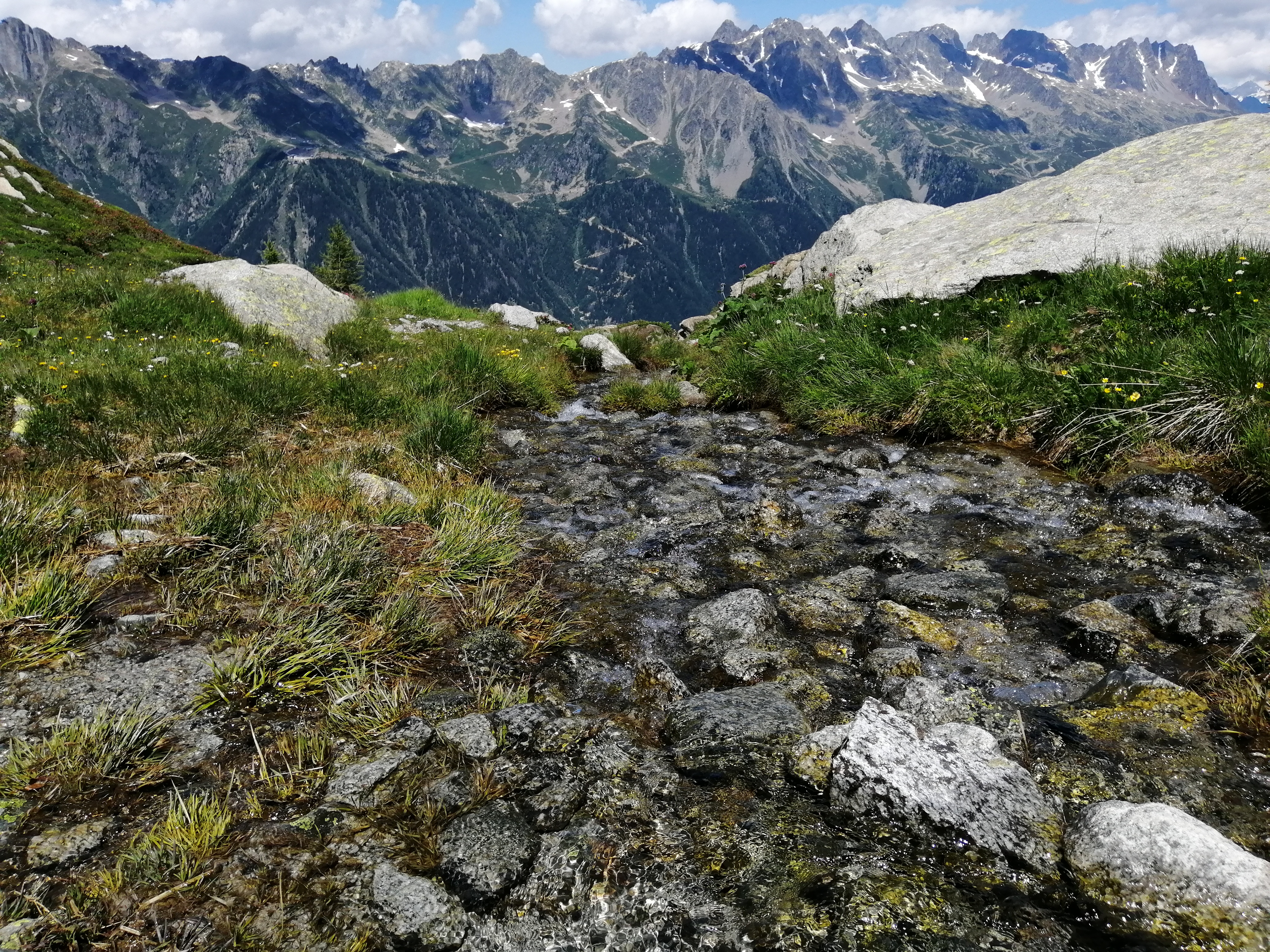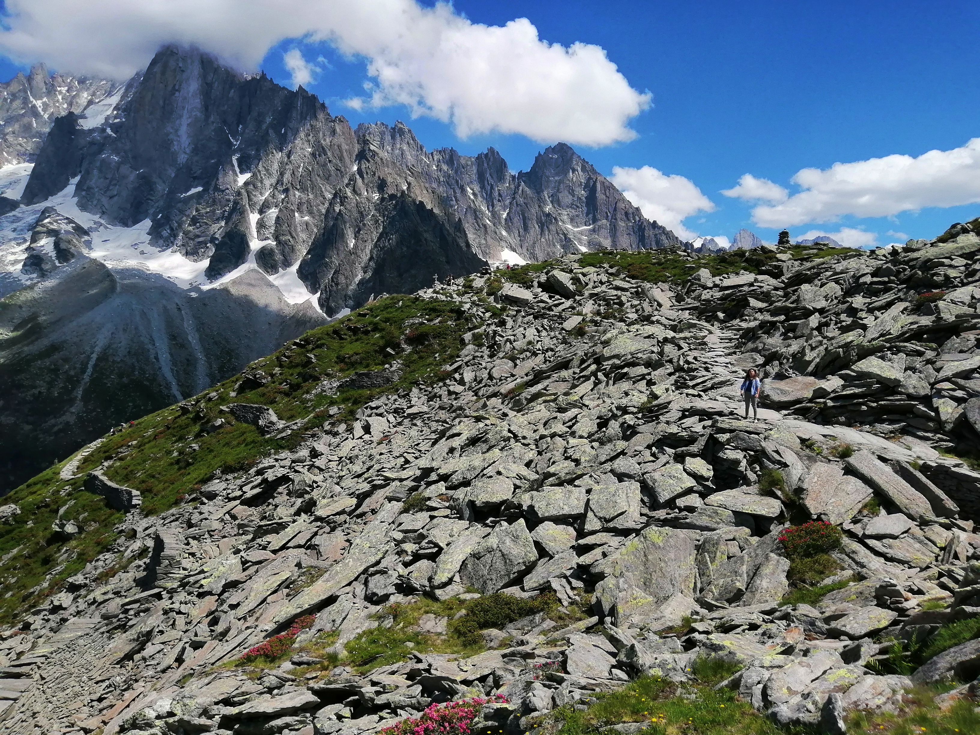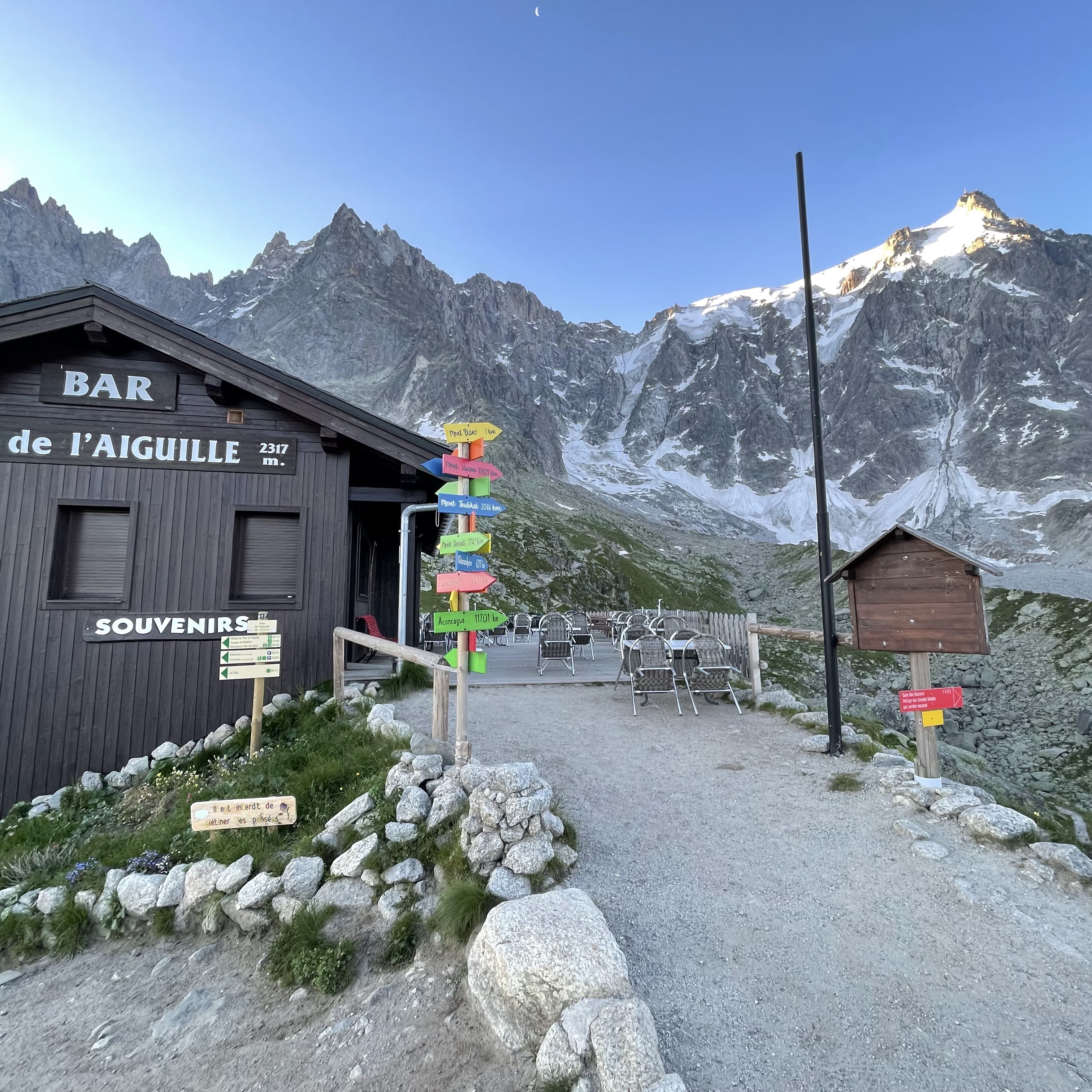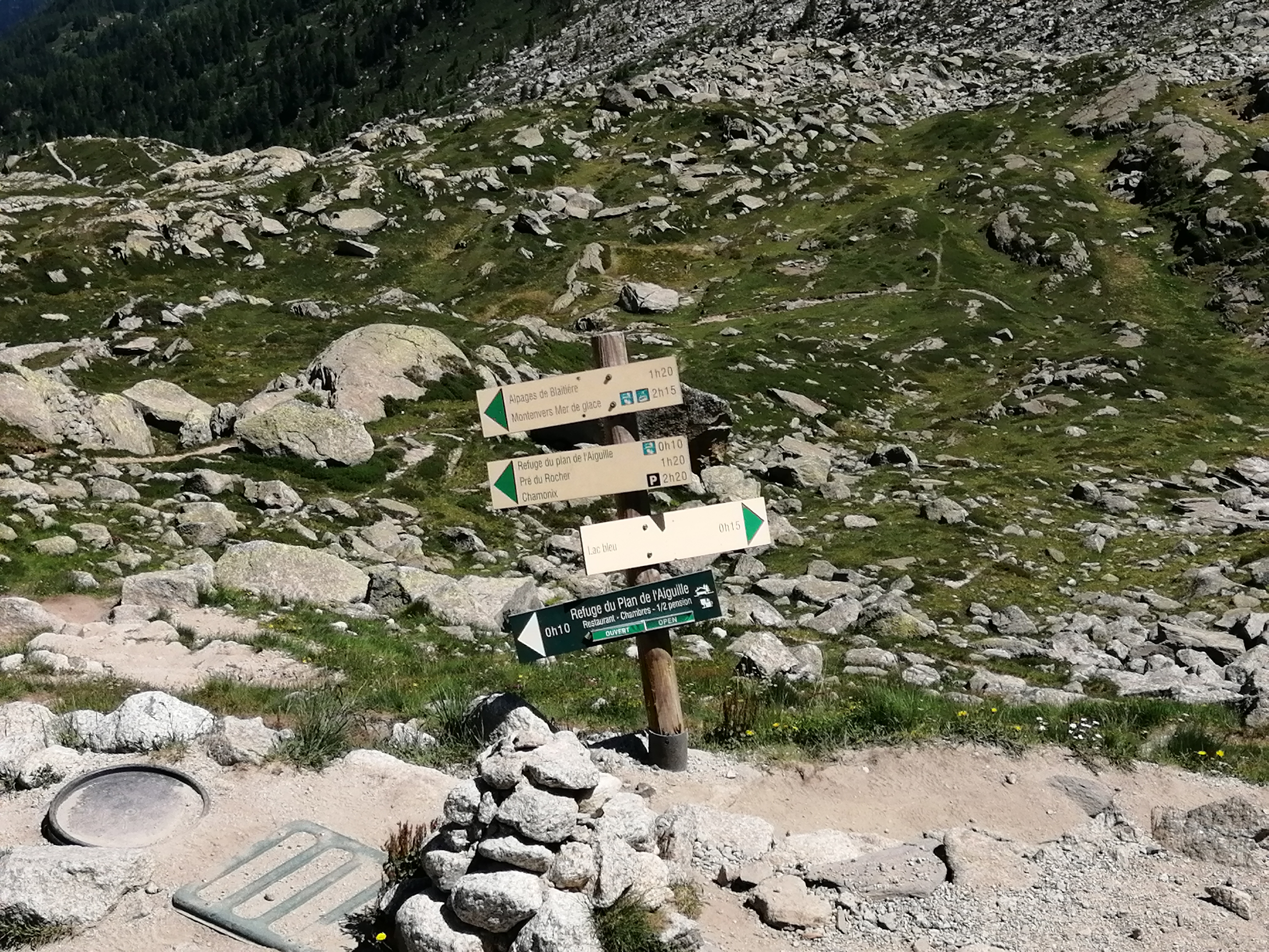C'est l'arrêt du téléphérique que vous pourrez utiliser pour effectuer votre correspondance lorsque vous vous rendrez à l'observatoire de l'Aiguille du Midi. Il y a aussi des sentiers de randonnée à partir d'ici. De plus, selon les personnes, cela peut être une bonne idée de laisser votre corps s'habituer à l'altitude ici. J'ai développé de légers symptômes du mal de l'altitude à l'observatoire de l'Aiguille du Midi, j'en suis donc descendu lentement à pied pour le retour. Le parcours est relativement facile à suivre et dure 2 heures et 20 minutes, mais j'ai été tellement fasciné par les belles montagnes et la variété de la flore et de la faune qu'il m'a finalement fallu 3 heures et 30 minutes. (dont 30 minutes d'observation des marmottes)