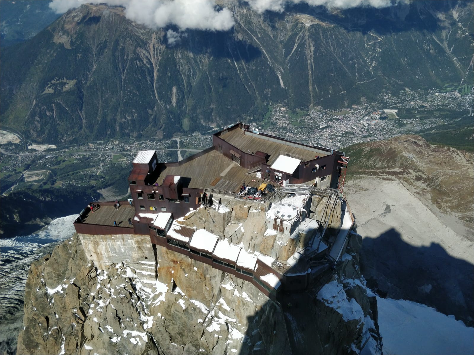 Arrêt obligatoire pendant la monté à l'aiguille. Petite buvette sur place. Si vous êtes ici au milieu de l'été il est possible de voir des Wingsuiter passé au-dessus de la cabine. The cheese Gratter line est juste à côté ;) Bonne vue sur l'aiguille :)