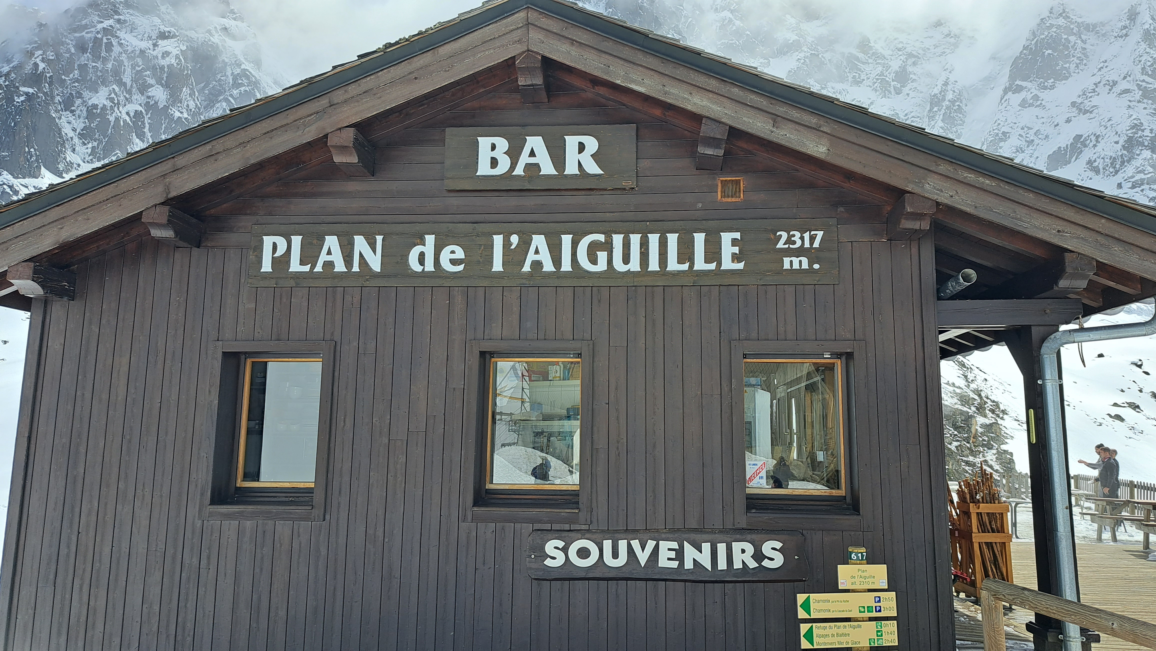 A la station relais du Plan de l'Aiguille en direction du sud, vous pourrez vous arrêter et prendre des photos. Il y a ici un café où vous pourrez déguster une tasse de café. La photo a été prise le 30 janvier 2020 pour référence