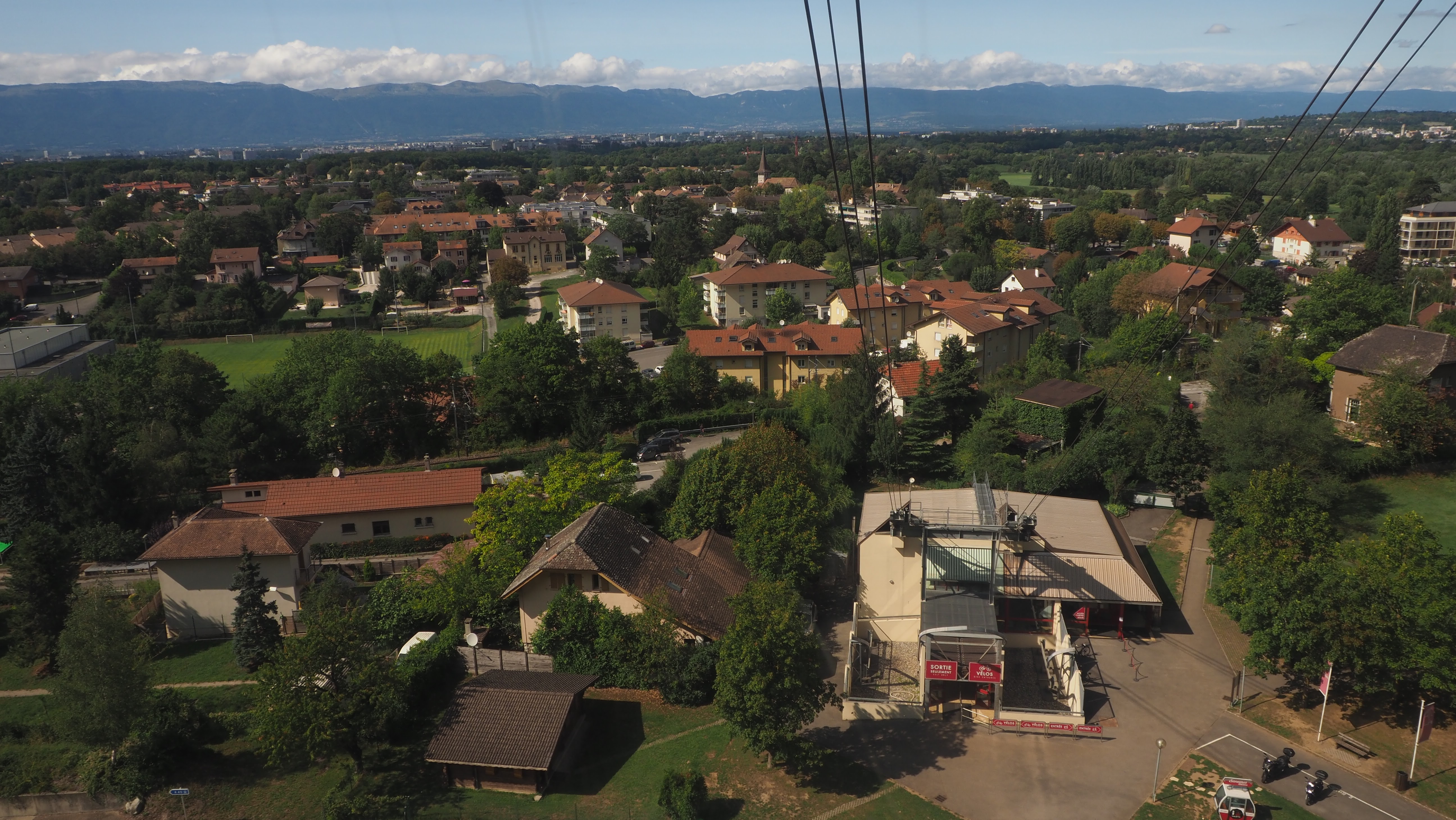 Jolie coup d'oeil sur Genève Les transports publics sont possible depuis la Suisse ! Arrivée à Genève - Cornavin, puis prendre la ligne de bus n° 8 jusqu'à la frontière de Veyriez - Douane, marcher à pied une dizaine de minute et vous voici au téléphérique. Prix correcte! Attention si vous ne descendez pas à pied prenez le billet aller-retour au départ. En haut magnifique vue sur Genève. Des ballades de plusieurs heures (dont le jardin botanique ou l'observatoire) sont possible sur le haute de la montagne du Salève. Quelques restaurants sont ouvert. Pour la descente à pied plusieurs possibilités ! Attention pour descendre il faut être un bon marcheur ! Bonnes ballades !