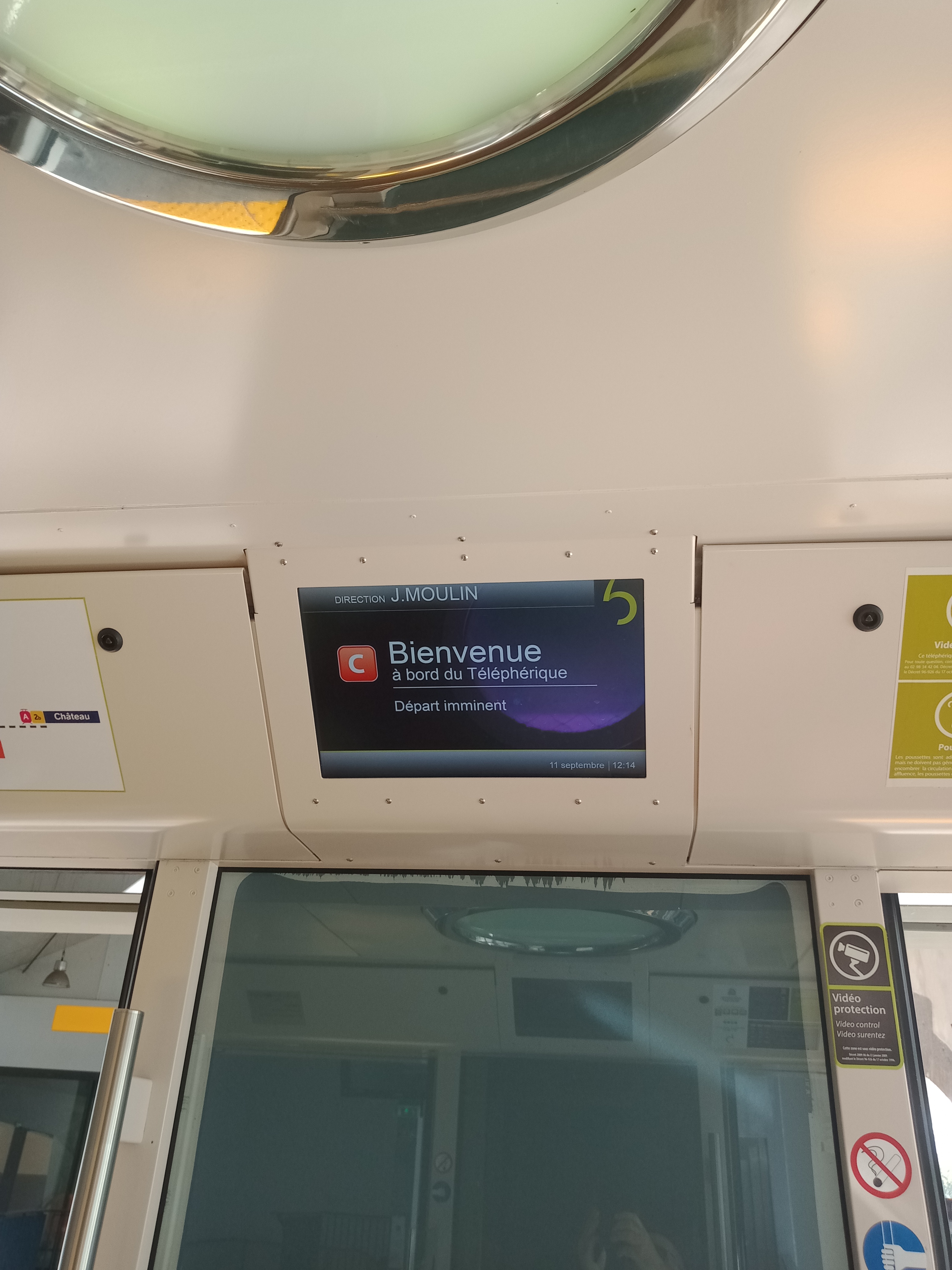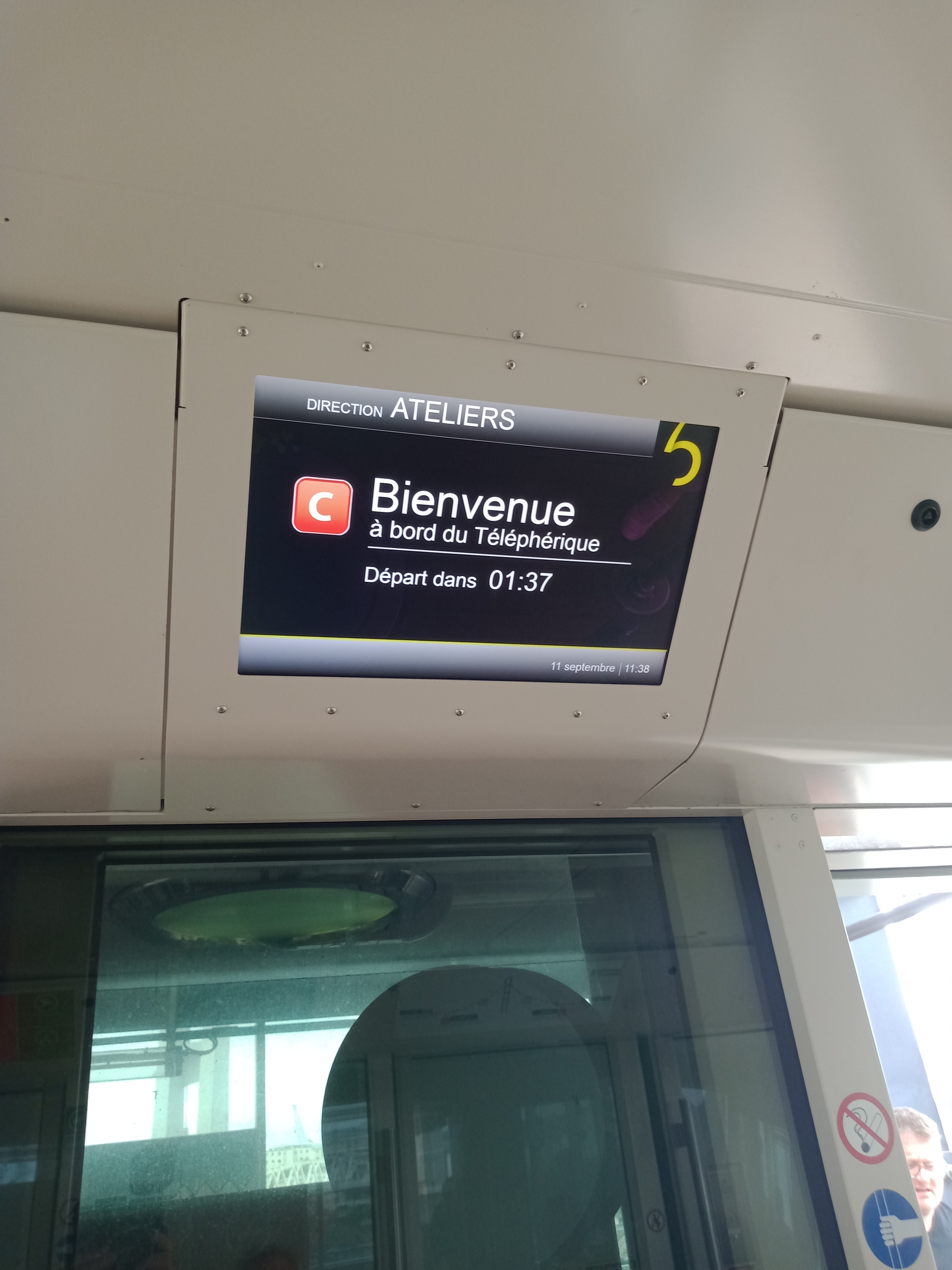 Un moyen de transport que je suis venue tester. Cet essai me conforte dans l'idée que je m'en faisais : je ne l'utiliserai pas s'il est installé dans ma commune. La cabine était quelque peu chahutée par le vent (35 à 50 km/h environ), et un incident technique a immobilisé le trafic pendant quelques minutes. Rapidement réparé cependant par un technicien compétent. De plus, par les temps qui courent, la jauge devrait être diminuée. Enfin, le niveau sonore est assez important dans les gares : machinerie bruyante. Résultat des courses : je ne me sentais vraiment pas à l'aise.